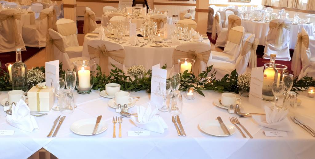 After the initial excitement of your engagement has had time to settle down you are probably thinking about planning your wedding (the fun part!). Many couples these days choose to have a theme to their wedding, these themes can be extremely varied and can range from something as simple as a colour theme, to recreating your favourite movie (just imagine a Harry Potter wedding…). So why not theme your wedding after the season your wedding date falls under, Autumn is a beautiful season full of gorgeous warm tones and brisk sunny days. Of course you also have the added advantage of Halloween and Bonfire night being encompassed by Autumn so there is always plenty of items that could be used for wedding décor (don’t worry we’ll give you some examples later on). Autumn is all about the lovely warm tones of the changing leaves so this is an important element to incorporate into your wedding day if you’ve decided to use this season as a wedding theme. Why not choose burnt orange chair sashes and bows to decorate your wedding chairs. This is the perfect way to bring in those lovely colours of the season into your big day. If you’re planning a wedding based on a season then it’s probably safe to say you enjoy nature and the outdoors. If this is true then why not use foliage as wedding décor, this can be used to run along tables or could even be hung up from the ceiling of the venue (if they allow this of course!) and makes the room look lovely! Let’s talk table centers, there are so many options here and you’re really only limited by your own imagination! However for the sake of simplicity (as we could go on and on forever) lets go for the most popular table centre option, fresh flowers. Now, although this is a very traditional option to decorate your wedding tables there are endless possibilities for colours and the overall look you want to achieve. For an Autumn themed wedding we would recommend opting for warm tones and include some yellows. Why not add Sunflowers into the mix to brighten the arrangements? You could even use pumpkins instead of vases, just like this gorgeous table centre below! To make your day truly Autumnal why not design your menu cards and place names around the theme. You could add some lovely orange and red leaves to the design like the menu cards we created for a recent wedding. When it comes to wedding favours there are plenty of choices, but sticking with our theme why not choose some yummy toffee apples for all your guests to enjoy. These favours are sure to be a hit and bring back nostalgic childhood memories! As mentioned before Autumn is a fantastic time to pick up wedding décor due to Halloween and Bonfire night falling within the season. With this in mind you can easily find some mini pumpkins which look gorgeous on wedding tables and scattered around the venue used as decoration. Pair these with your table centers and some leaves and you can have your venue looking perfect! Add some warm coloured fairy lights here and there to really give a magical feel. We have given you an array of ideas to perfectly plan your magical Autumn wedding, we hope you’ve found some ideas and taken inspiration from them! If you decide to use any of these ideas we would love to see your pictures, you can either tag us in your photos or email them to us. If you’re in the stages of planning your wedding and are yet to choose a venue why not take a look at the wedding packages we have to offer. We also have a range of discounted late availability wedding packages to choose from for those of you getting married in a short period of time!