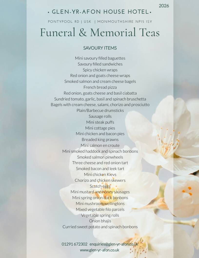 'Thank you so much to you and the staff at the Glen-yr-Afon for the most wonderful tea yesterday. It was a fantastic end to our day, in beautiful surroundings and one that my Mother would have loved.'